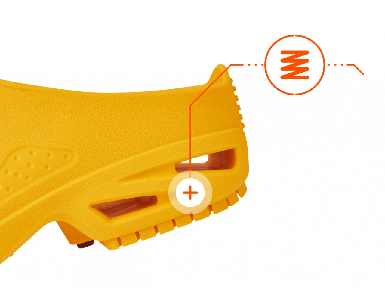 Uno zoccolo semplice e pratico, che permette una postura perfetta. Il tallone è stato progettato per assorbire gli impatti e per prevenire micro lesioni, oltre ad alleviare la sensazione di gambe stanche.